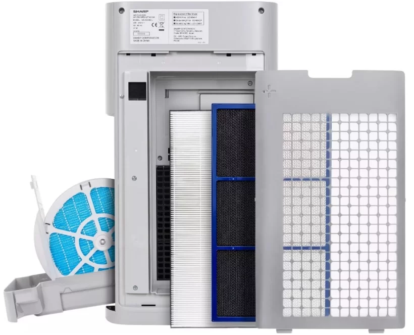 Oczyszczacz Sharp UA-HG40E-L wykorzystuje filtr wstępny, węglowy i HEPA H13. Dodatkowo został wyposażony jonizator plazmowy Plasmacluster. Urządzenie ma funkcję nawilżania, więc znajduje się w nim również filtr ewaporacyjny.